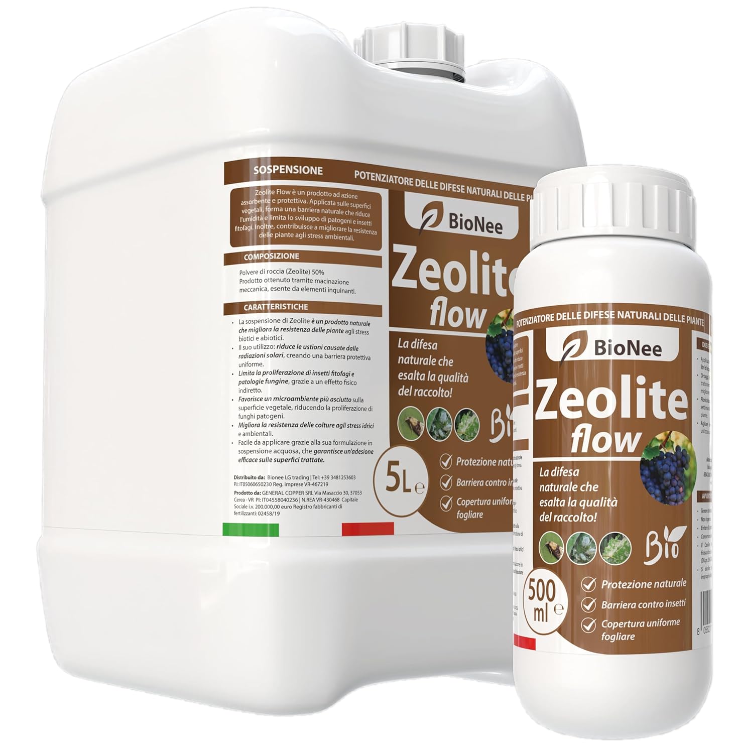 • 🛡 Difesa naturale per colture sane e rigogliose Zeolite Flow Bionee è una sospensione a base di polvere di roccia che crea una barriera fisica naturale sulle superfici delle piante. Questa barriera assorbente riduce l’umidità fogliare e limita la proliferazione di insetti fitofagi e patogeni fungini, contribuendo a mantenere le colture sane senza ricorrere a sostanze chimiche.