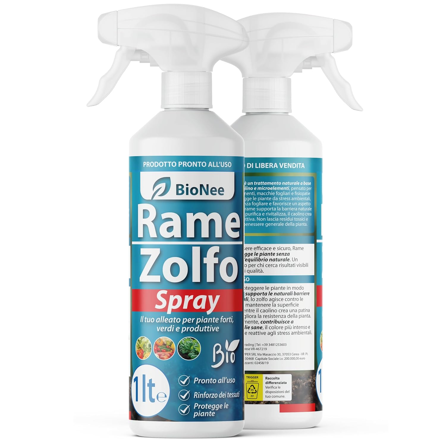 Rame Zolfo Spray – Trattamento naturale pronto all'uso per piante ornamentali, da frutto, orto e giardino – Con rame, zolfo, caolino e microelementi (1 lt)